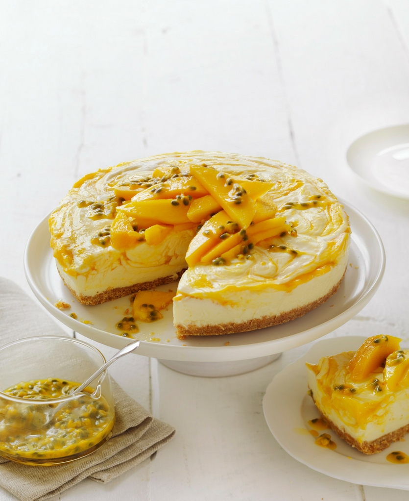 Mango and white chocolate cheesecake