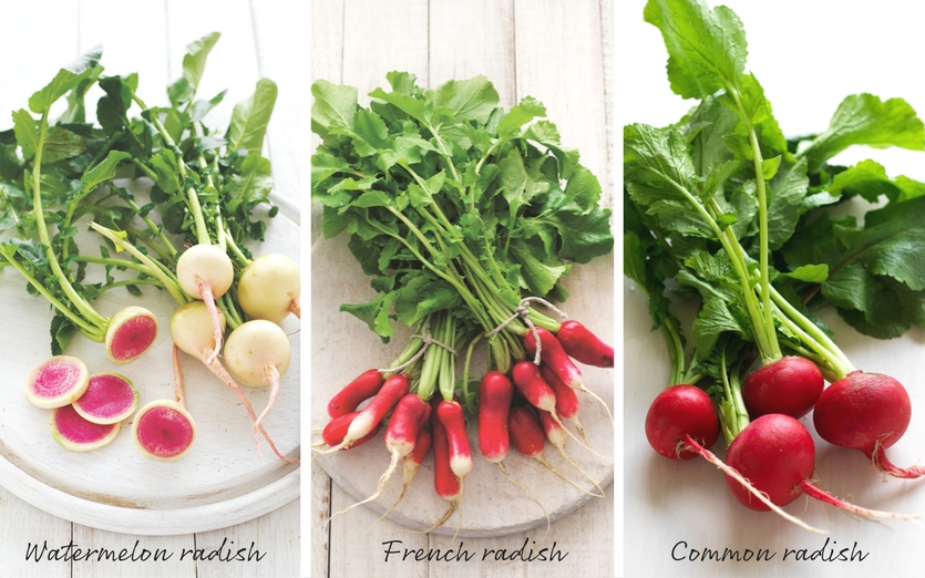Spice up your salads with radishes. The ever-expanding range of radish ensures a range of colours, shapes and heat. The tradition or common red radish is now joined by two-toned French radishes, multi-coloured bunches and watermelon radish. Each variety adds delicate pepperiness to salads, sandwiches or use as an accompaniment to a festive crudité.