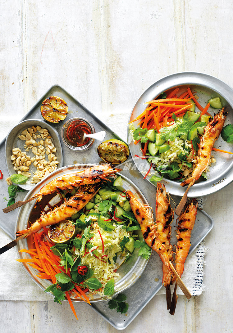 - Chilli, lime & peanut salad with BBQ prawns