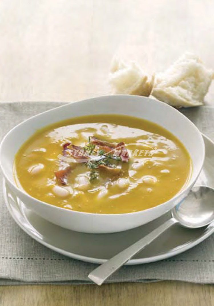 Pumpkin, leek & cannellini bean soup
